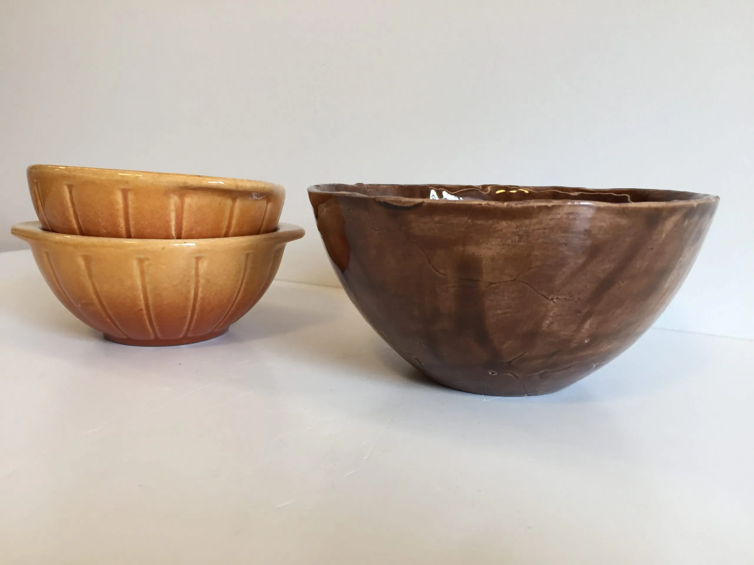Bel ensemble de 2 BOLS Anciens à Oreilles DUROFEU N°1 et d’1 Bol en poterie Artisanale par SDEL , de la jolie Faïence Vintage, un ensemble Déco et rempli de Poésie pour la Cuisine, les matins heureux .. on est sous le Charme !
