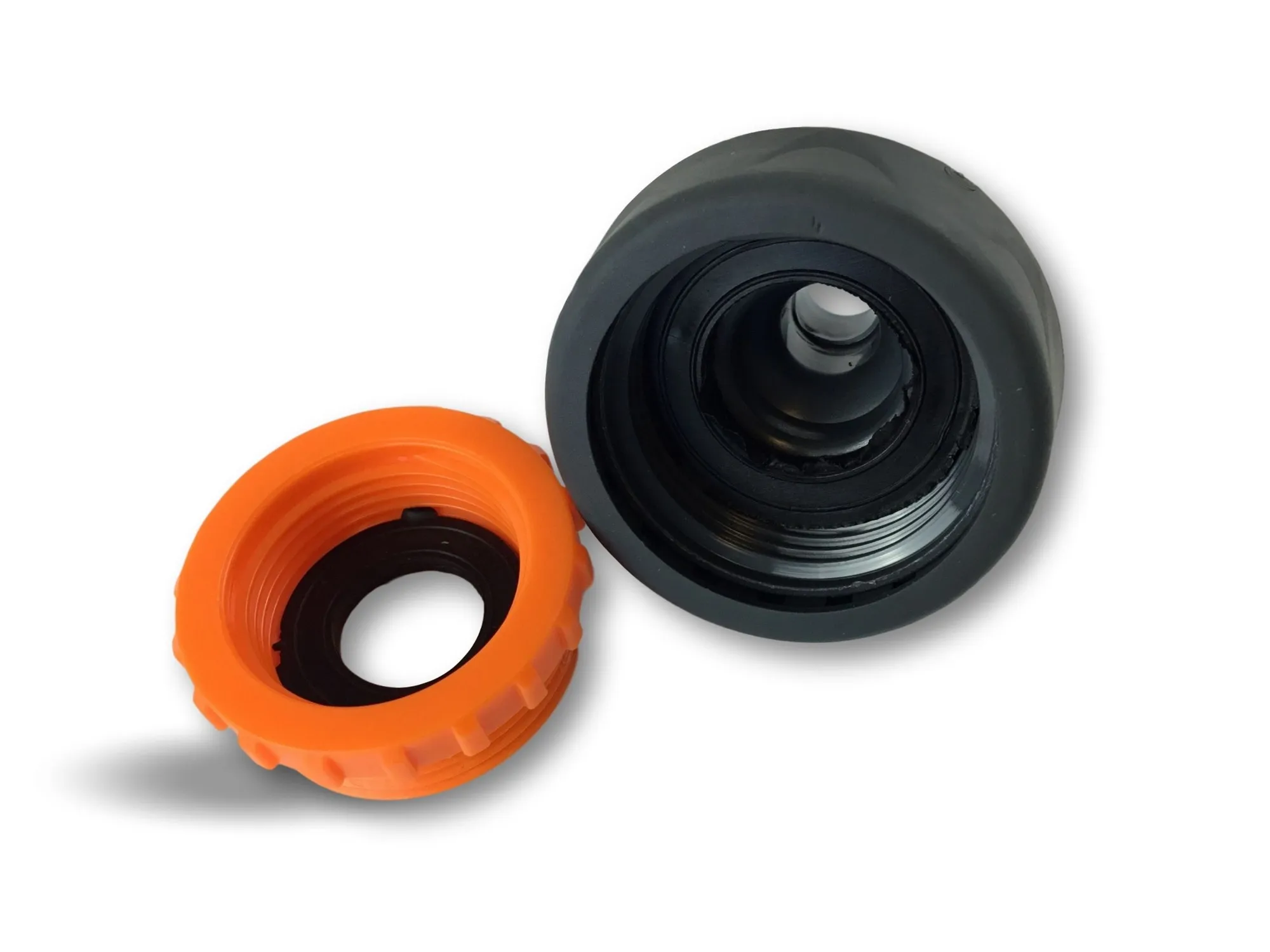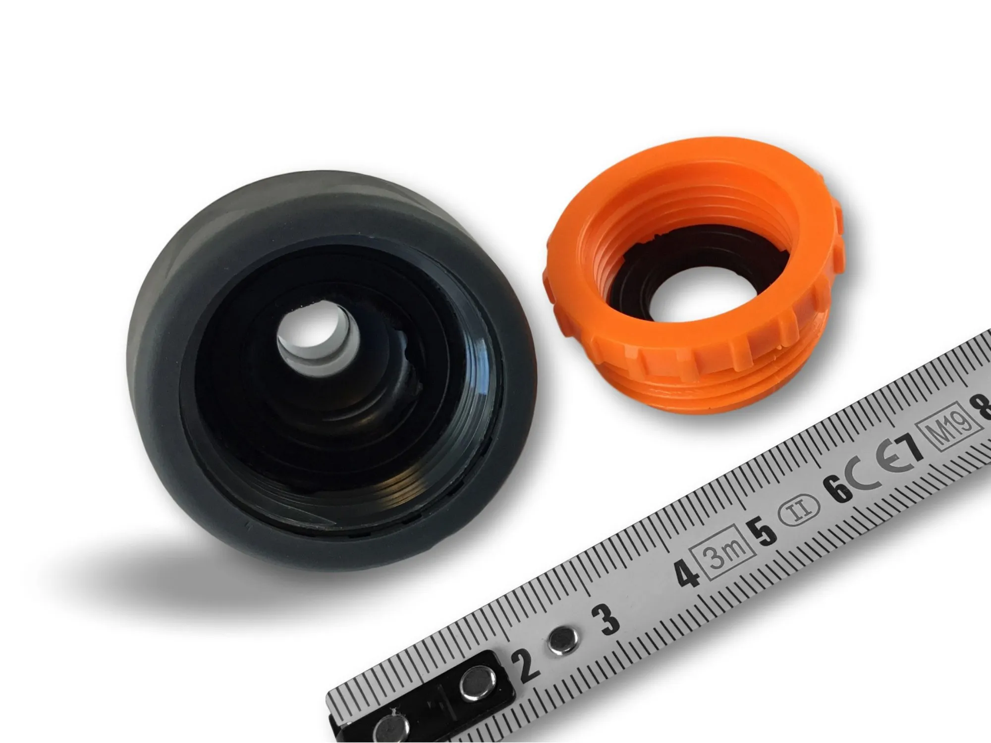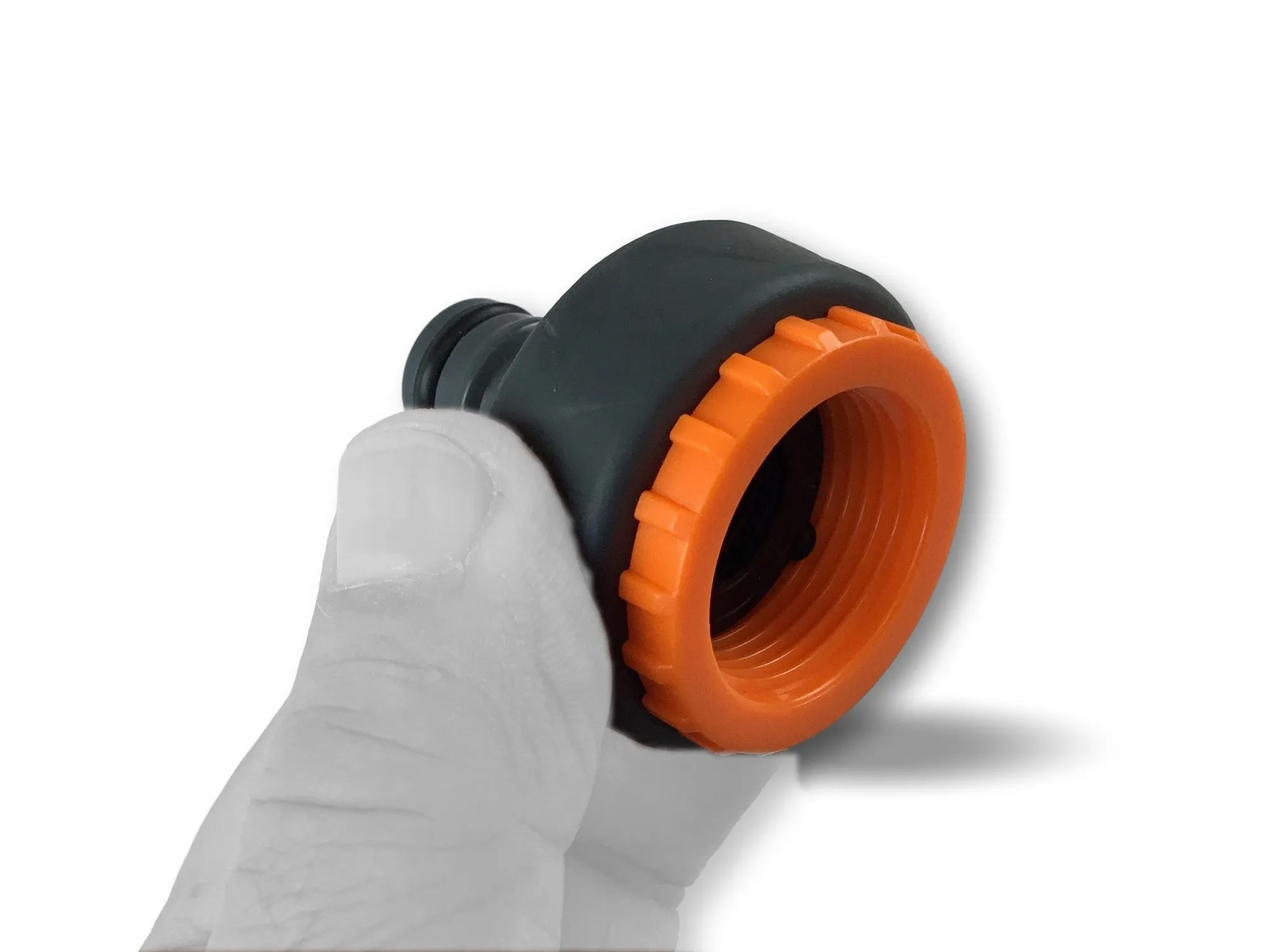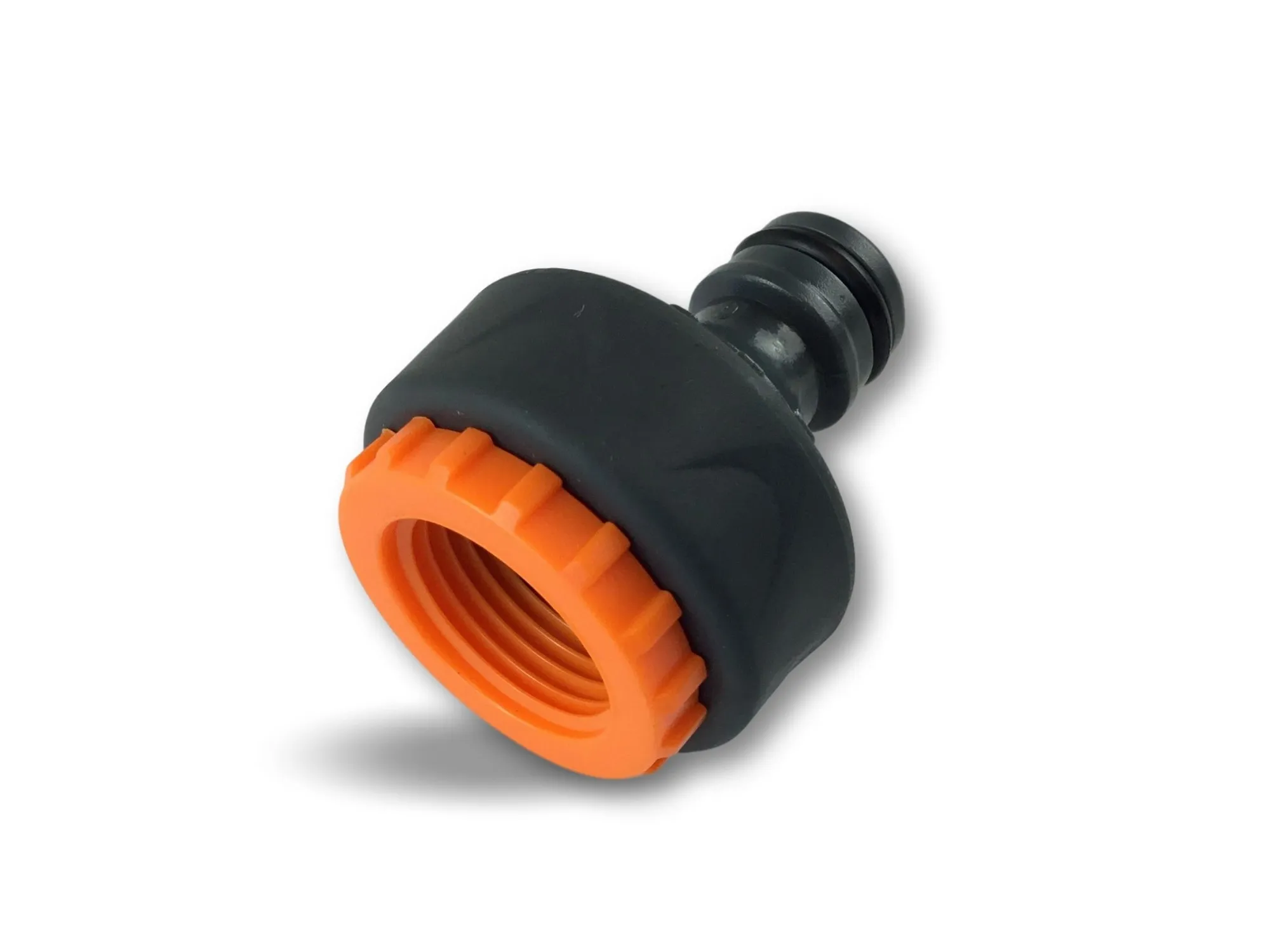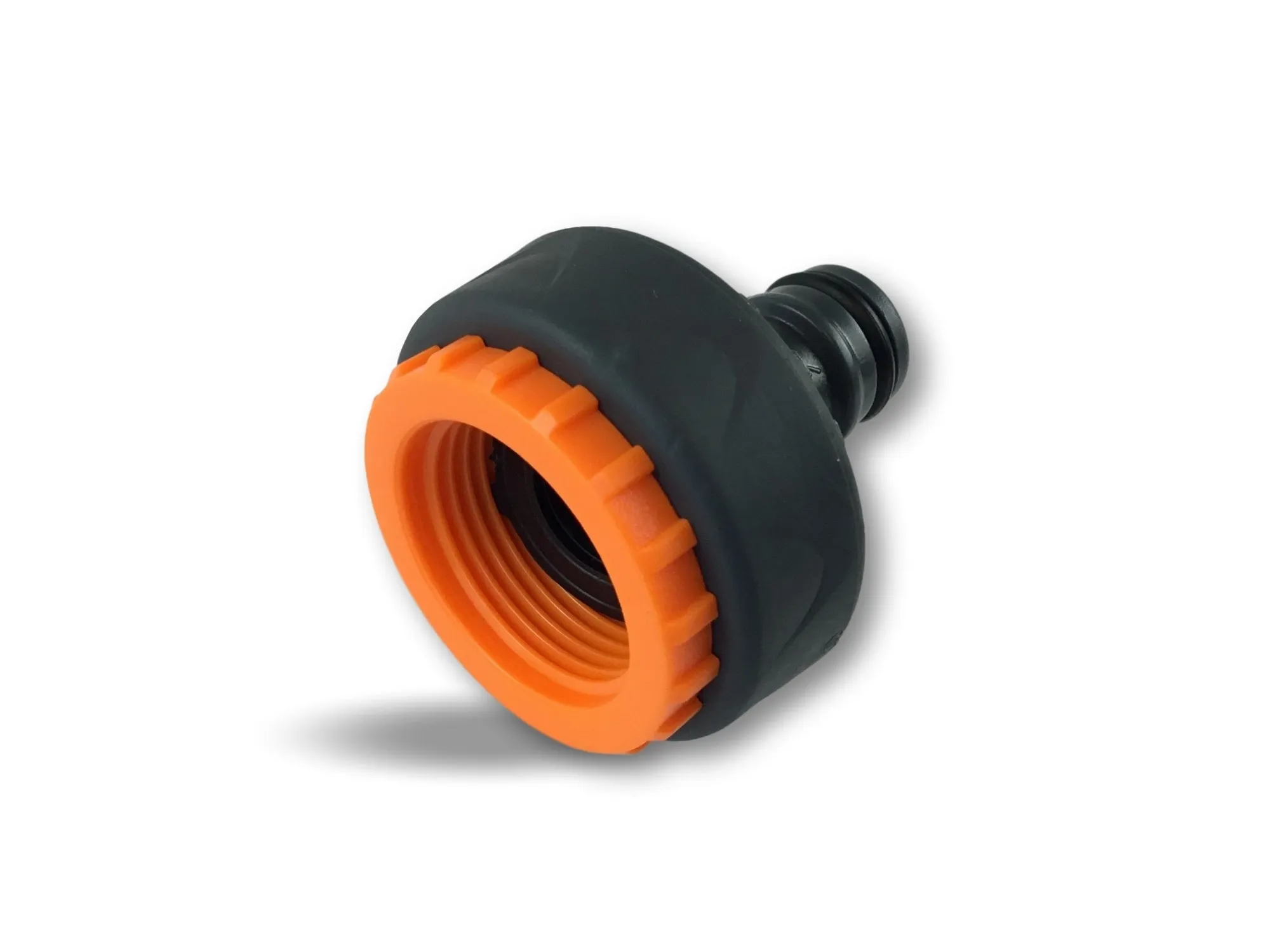 > Adaptateur robinet 3/4 et 1 pouce | Connexion sur connecteurs standards | Joints d’étanchéité | ABS haute qualité | Noir et orange | Revêtement souple