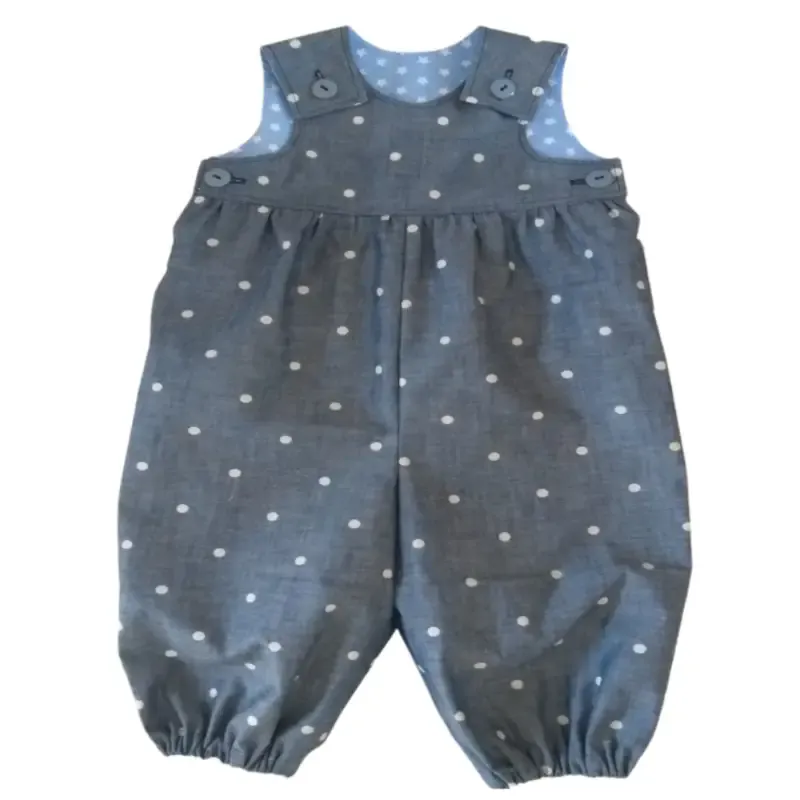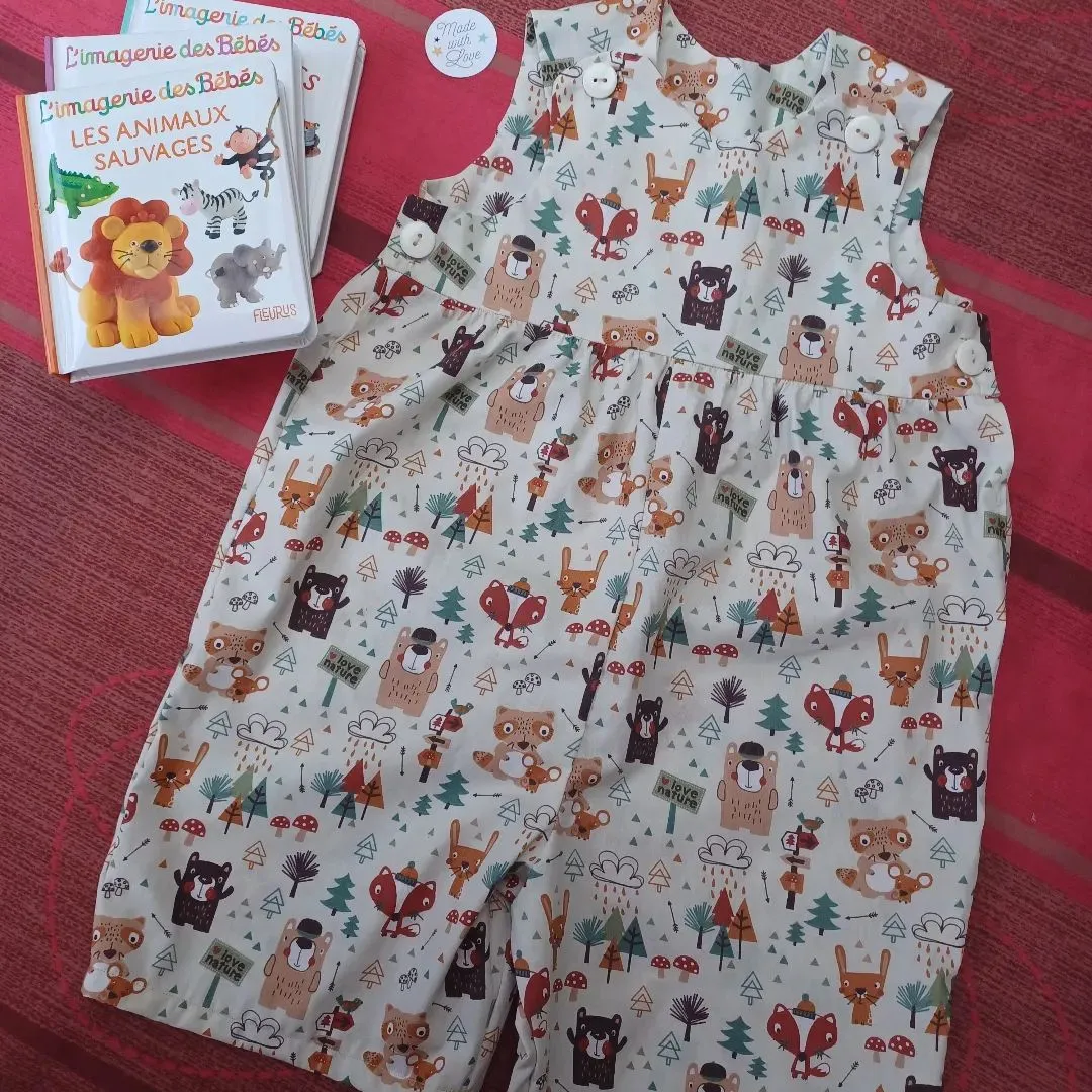 Les salopettes pour bébé sont à la fois pratiques et adorables, c’est pourquoi elles sont populaires saison après saison ! Le patron de couture de cette salopette bébé présente un corsage doublé, des boutons sur le côté, un pantalon légèrement froncé à la taille et des bretelles boutonnées. On peut si on le souhaite rajouter un élastique au niveau des pieds et rajouter deux poches sur le devant.