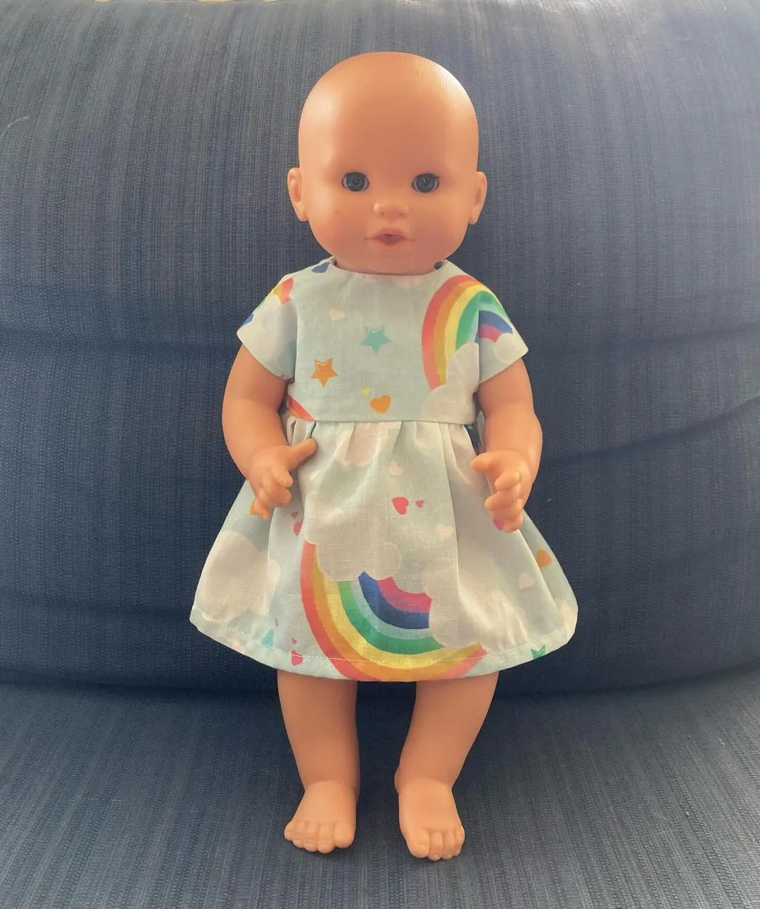 Cette robe est conçue pour les poupons qui mesurent approximativement 32 à 35 cm et dont le tour de taille est de 25 cm environ. Il est bien sûr possible d’adapter le patron pour des poupées de taille différentes ! On peut également raccourcir la jupe pour transformer la robe Madeleine en tunique.
