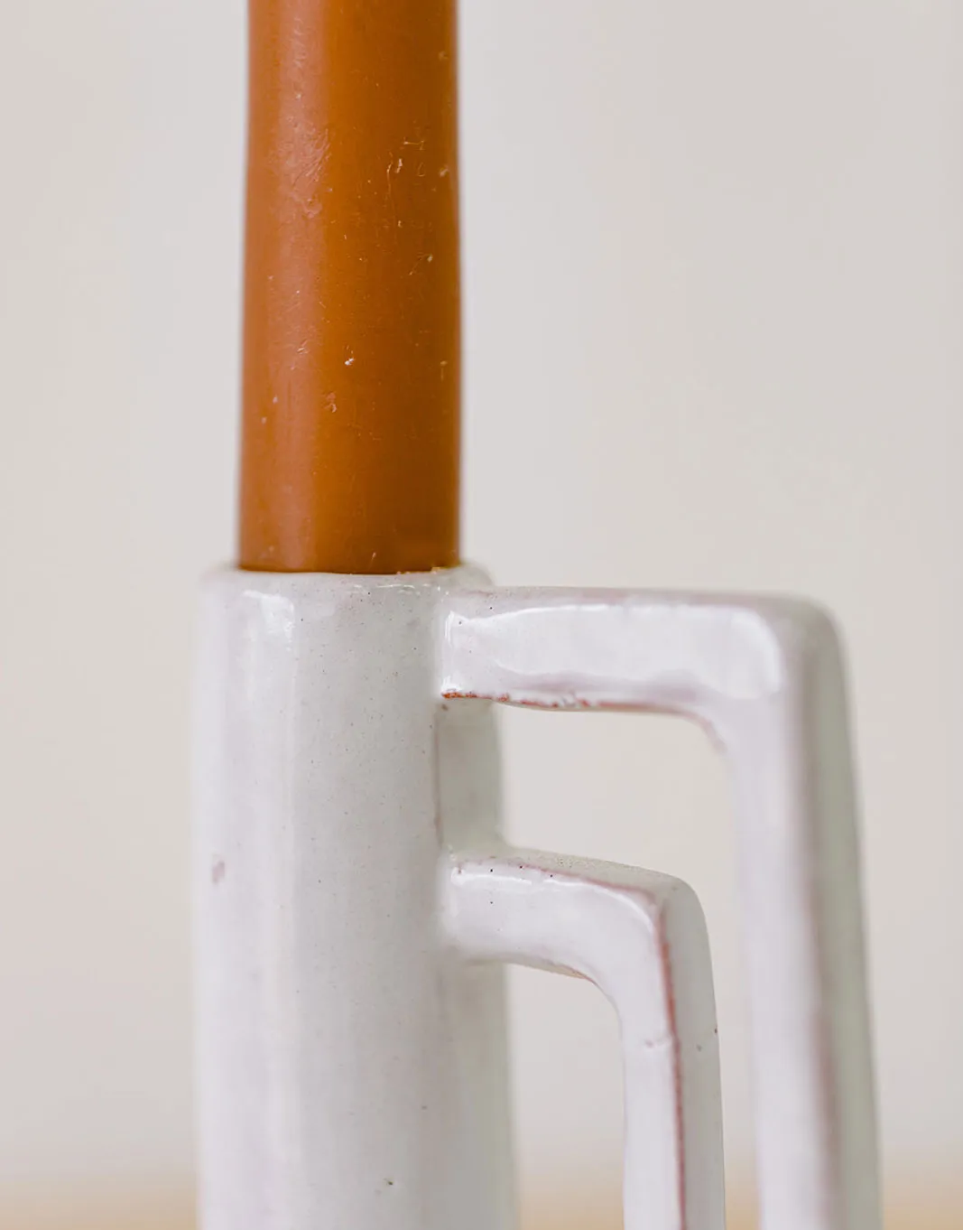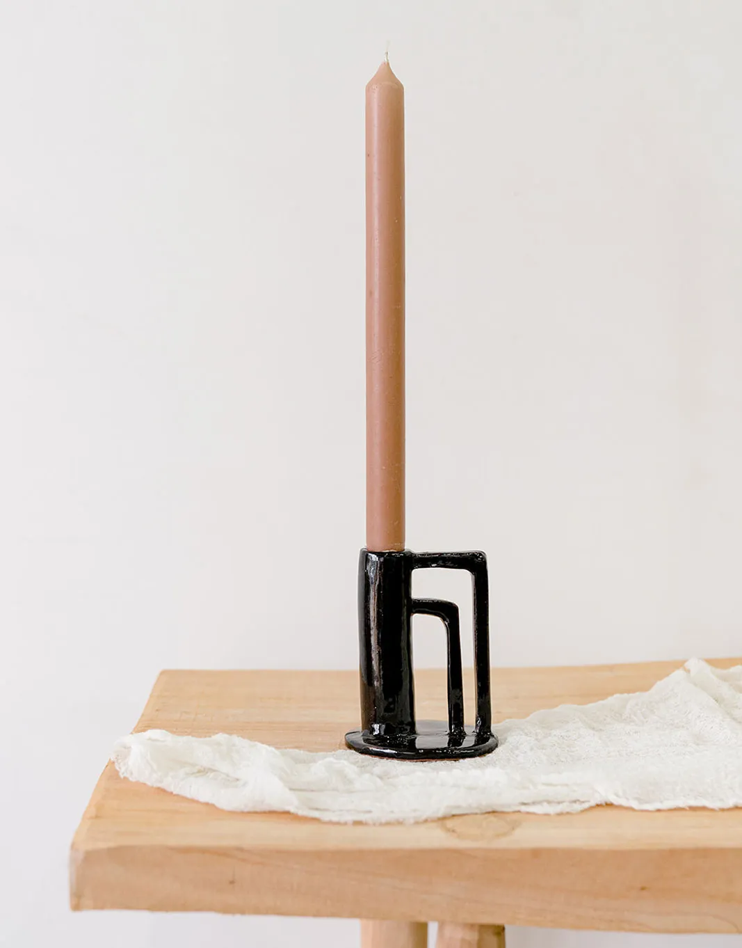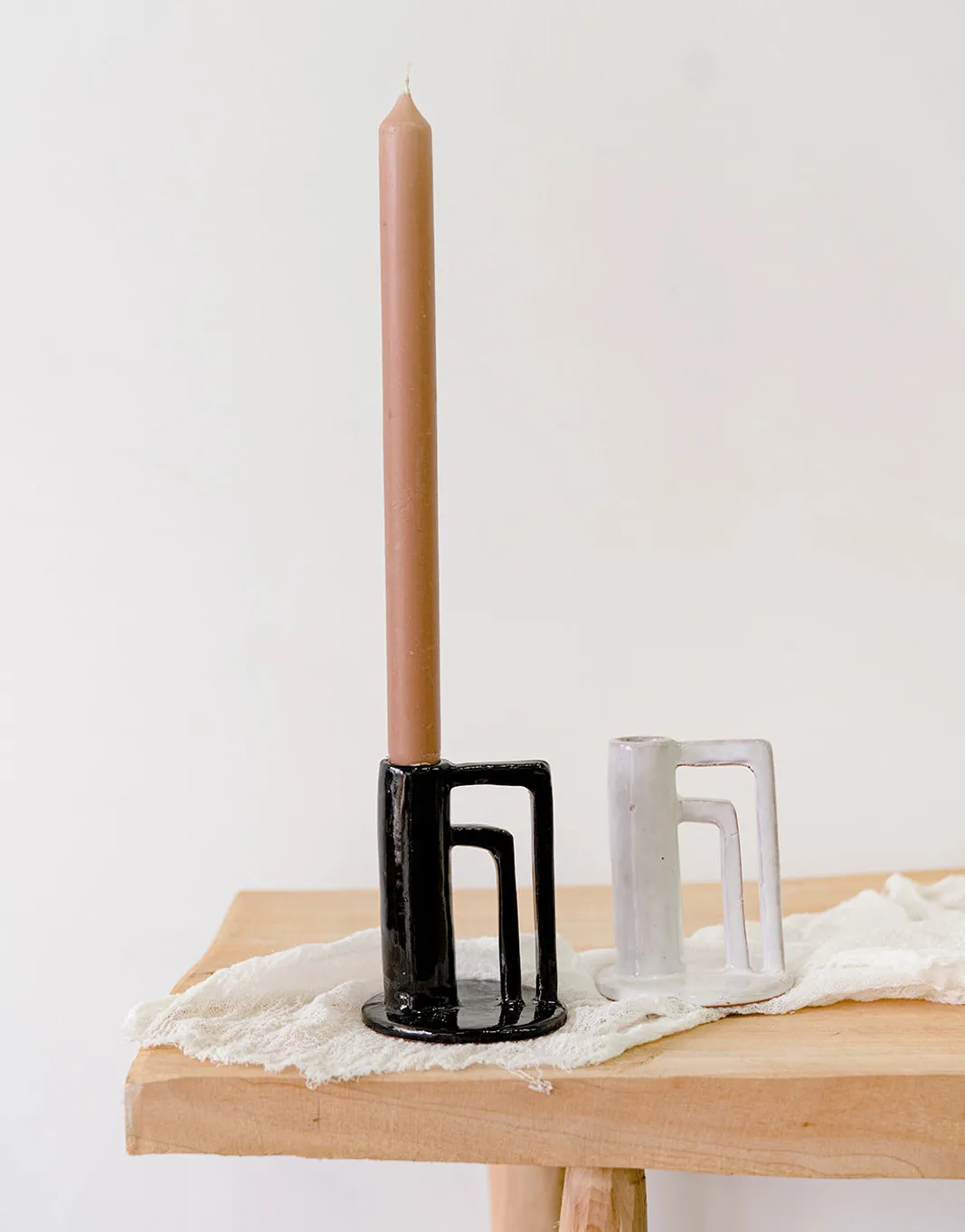 Son design épuré et ces deux couleurs proposées, noir et blanc, ajoutent une touche de modernité à l’espace où vous le poserez. Il s’intègre parfaitement à différents styles de décoration. Si vous souhaitez une table élégante et y ajouter un peu de chaleur, mixez notre bougeoir graphique en argile avec celui en laiton doré. Une ambiance accueillante garantie dès qu’une bougie est allumée !