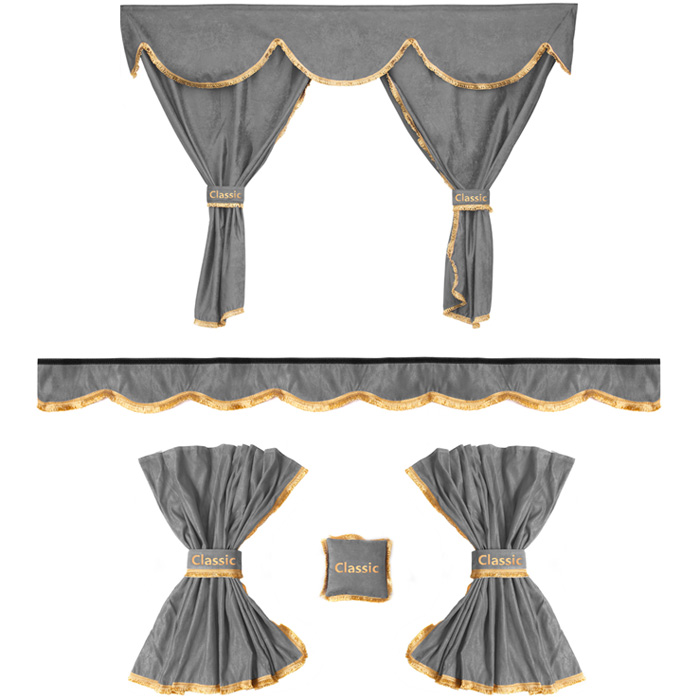 – Deux rideaux avant (chaque rideau couvre un carreau latéral et la moitié du pare-brise)
