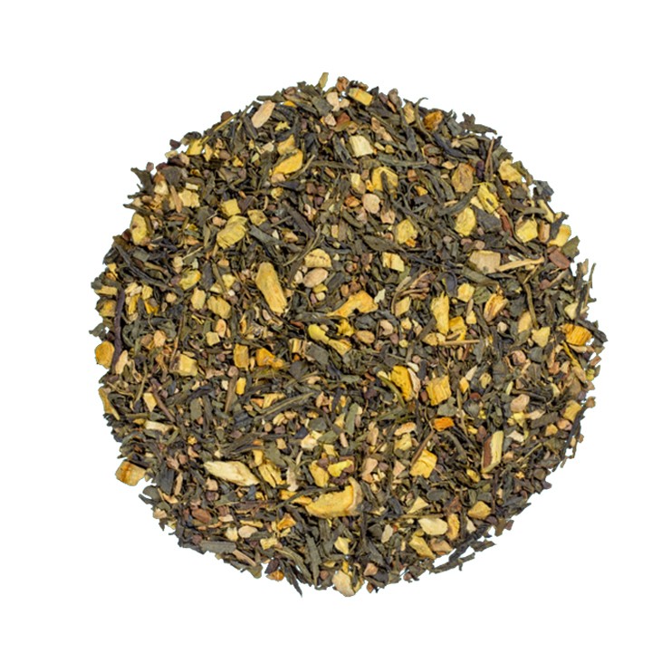 Un mélange réconfortant de thé vert, d’épices et de notes fruitée.